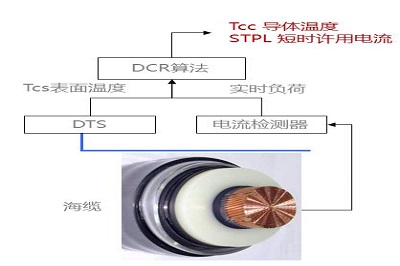 結(jié)合海纜實際特點---海纜光纖溫度不等于海纜導(dǎo)體溫度,為此我們采用DTS(分布式光纖溫度傳感器)和DCR(電纜動態(tài)載流量)算法結(jié)合來精確計算海纜導(dǎo)體溫度。